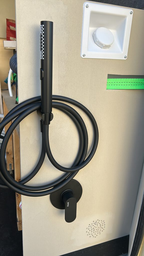 Die Außendusche wurde angebracht. Und ja, mit dem Schlauch und dessen Aufwicklung überlegen wir uns auch noch was ^^