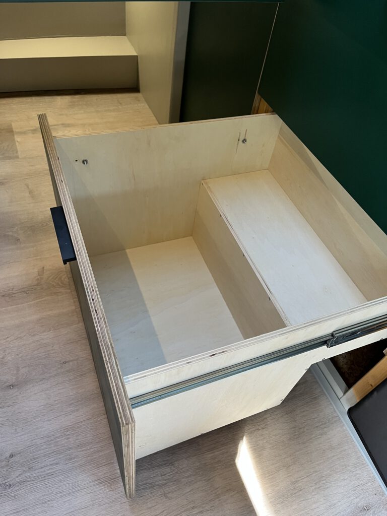 Quatsch! Na gut, es ist eine besondere Schublade mit zwei „Etagen“. Der Grund? Heizungsrohr umbauen und den Platz bestmöglich nutzen 😉