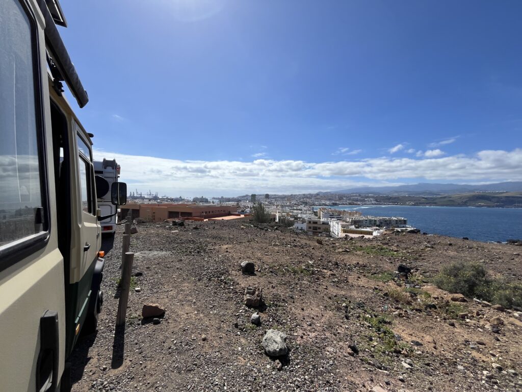 Auf einem Plateau fanden wir einen schönen Parkplatz für die kommenden Tage. Toller Blick über Las Palmas inklusive.