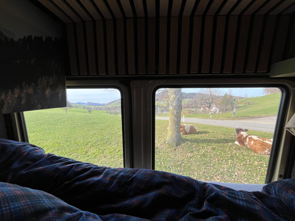 Inmitten des malerischen Juras gelegen lies es sich wunderbar schlafen. Lediglich die Kuhglocken wurden gehört. 🙂