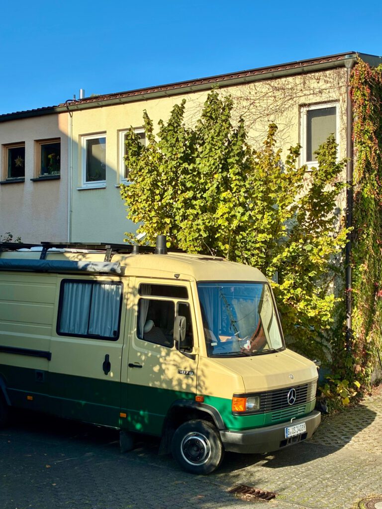 Ein Fachwerkhaus und ein historisches Fahrzeug – hier stand unser Bus gut!