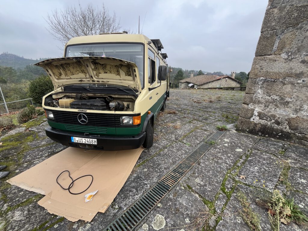 Nebenbei wurde die Zeit in Galizien auch dafür genutzt: Ersatzteile besorgen, mal „schnell“ eben den Keilriemen gewechselt. Auch das muss sein 😉